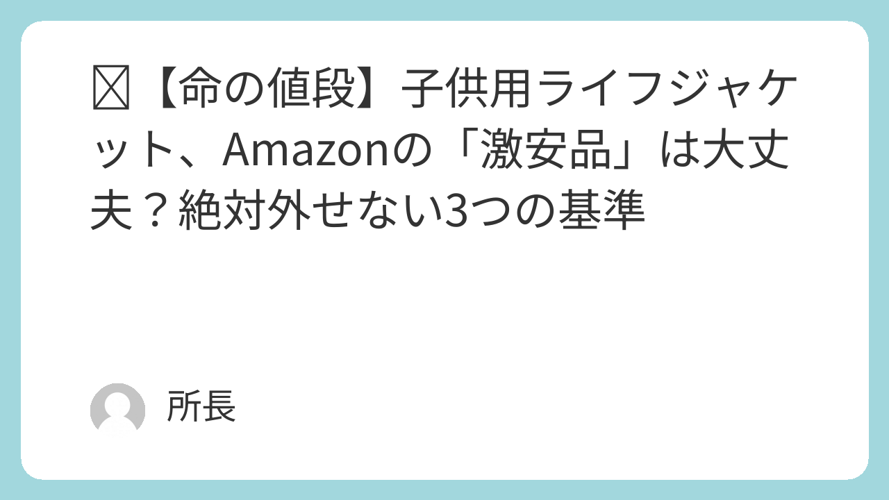 ​【命の値段】子供用ライフジャケット、Amazonの「激安品」は大丈夫?絶対外せない3つの基準